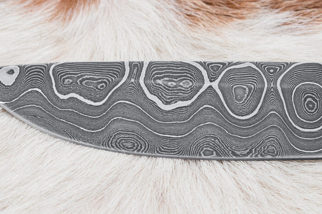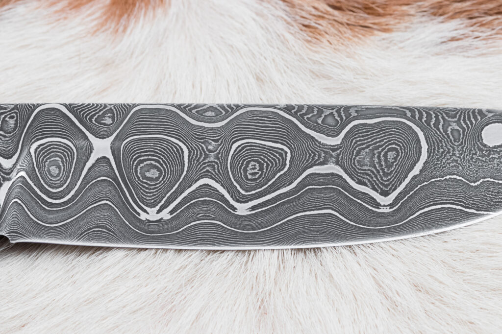 Čepel o délce 124 mm, vyrobená ze 400 vrstev překládané damaškové oceli (19312 a 75ni8), kalená na 60 HRC zajišťuje výjimečnou ostrost, pevnost a dlouhou životnost. Povrch čepele zdobí jednotlivé vrstvy kování damašku, která dodává noži jedinečný a neopakovatelný vzhled inspirovaný tradičními kovářskými technikami.