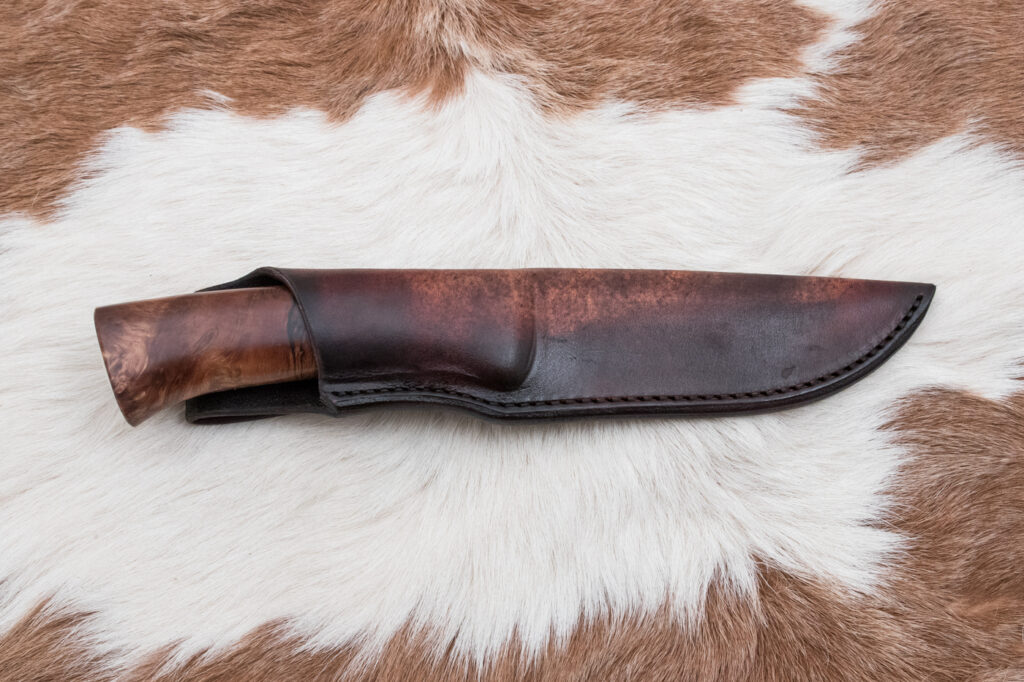 K noži patří pouzdro z na miru tvarované hovězí kůže kryjící čepel nože. Nůž je v pouzdře zajištěn vylisováním na nůž. K uchycení pouzdra na opasek slouží zahnuté a prošité poutko.