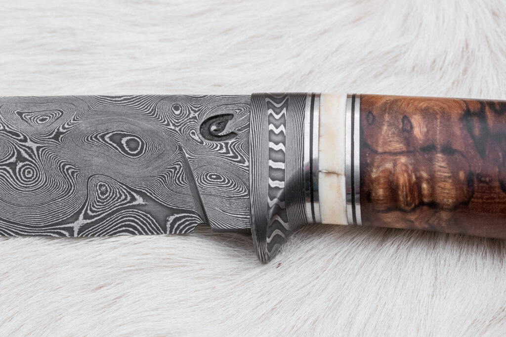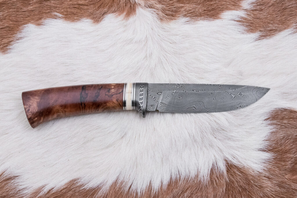 Ručně kovaný damaškový nůž 808 klasického tvaru. Poslouží na jemnější práci, ale snese i hrubší zacházení. Damascenký nůž který oceníkaždý milovník přírody.