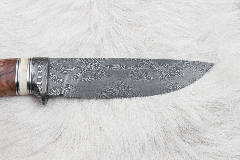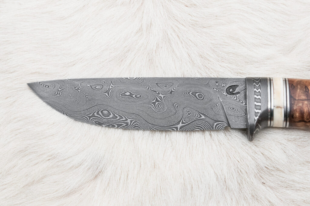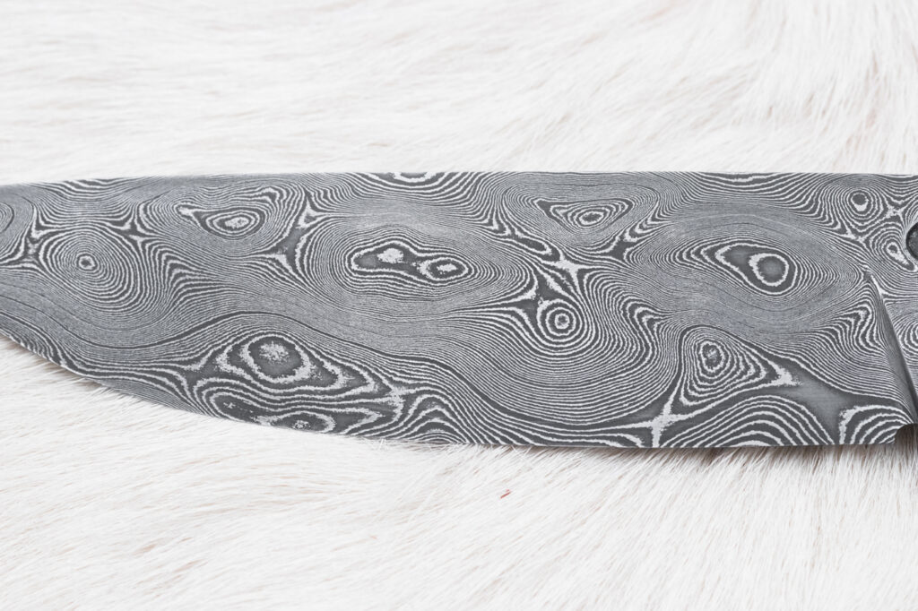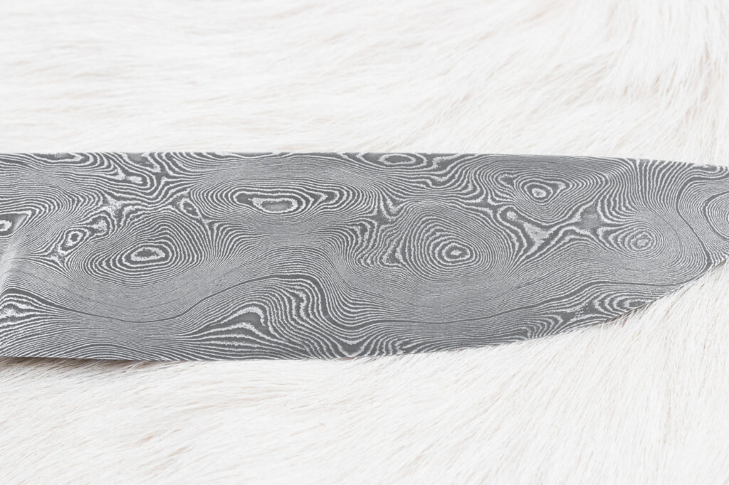 Čepel je z damascencké oceli kované ze 400 vrstev. kaleno na 60 HRC. Na hřbetu je síla čepele 3.6 mm. Povrch čepele damašek.