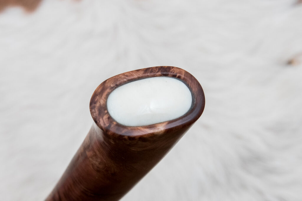 Celou délkou rukojeti prochází trn na konci zajištěný maticí, která je zakryta záslepkou ze stab. javoru.